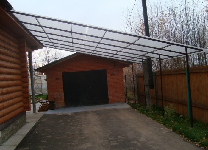 Стандартные характеристики каркаса навеса: столбы 80х80х3мм.